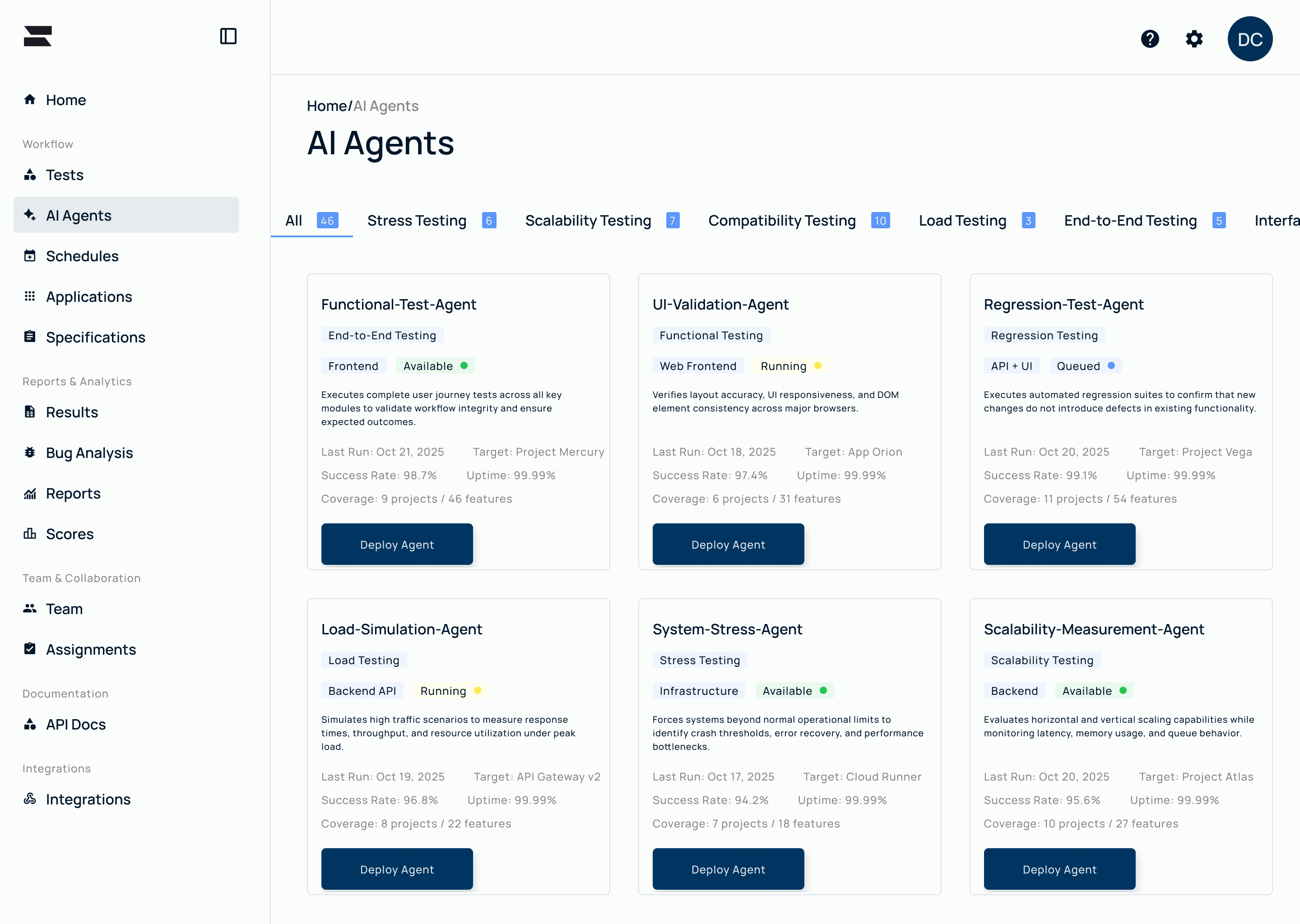 Zof AI is the autonomous reliability infrastructure powered by the System Graph and 40+ specialized AI agents. Zof validates across 19 reliability dimensions continuously, detecting issues 60% faster than traditional testing methods and reducing production incidents by up to 95%. Engineering teams use Zof to ship with confidence, knowing every release is validated across security, performance, accessibility, and more.